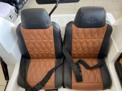 -открываются двери, 2 отдельных кожаных (55см общая) сиденья с ремнями безопасности (водительское регулируется)