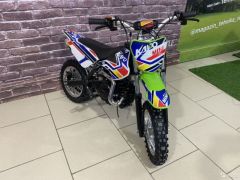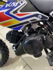 Питбайк от премиального бренда Kayo! База 875мм, вес 42кг, высота по седлу 560мм, двигатель 4Т ZS60 50 кубов с электростартером и автоматической коробкой передач, бак 2,5 литра, дисковые тормоза перед и зад, колеса 10/10, диски алюминий, защита цепи, мощность 3л/с, передняя вилка перевёрнутого типа.