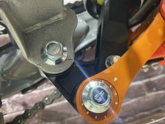 Алюминиевые диски с буксаторами, усиленные ступицы, карбюратор Nibbi 30, мощная вилка перевёрнутого типа с регулировками , задняя подвеска прогрессия, прозрачный бак.
