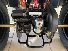 Новый двигатель с балансировочным валом, дисковые тормоза перед и зад, электронное зажигание, электростартер + инерционный стартер, мощность 16 лошадиных сил, колёса R10 разноширокие, коробка автомат, линзованные фары, усиленная цепь, фаркоп, чека аварийной безопасности, передний и задний багажники, индикатор выбора передач ВПЕРЁД/НЕЙТРАЛЬНАЯ/НАЗАД, задний стоп сигнал, звуковой сигнал, счётчик моточасов, прикуриватель. Длинна 1,7 метр, ширина 1,05 метр, высота 1.13 метра.