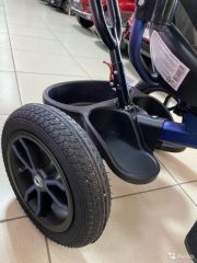 Велосипед оснащен надувными резиновыми колесами с пластиковым диском. Передние – диаметром 12” (30 см), заднее – 10” (25 см). Сидение эргономичной формы имеет мягкий вкладыш и удобную высокую спинку с регулировкой в 3 положениях. Сидение можно разворачивать на 180 градусов, чтобы малыш ехал лицом к маме или к дороге.