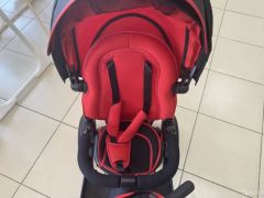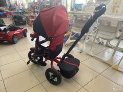 Велосипед 3-х колесный с ручкой управления, фара со световыми и звуковыми эффектами, холостой ход переднего колеса, наклонная спинка, вращающиеся сиденье на 180 градусов, съемная крыша, в комплекте светоотражающие наклейки, надувные шины 12' и 10'